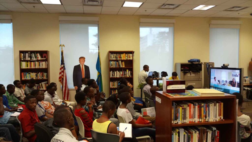 Ni isomero rikorera muri Ambasade ya Leta Zunze Ubumwe z’Amerika, riri mu masomero amaze igihe kirekire mu Rwanda. Isomero rifite ibitabo byinshi, byiza kandi bishya mu ndimi zitandukanye. Ni ahantu heza ho kumenyera ibintu byinshi kuri Amerika ndetse no ku bindi bihugu haba politiki, ubukungu,ikoranabuhanga, demokarasi, itangazamakuru, Icyongereza, kwigisha,….